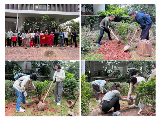 组织师生在莞城校区图书信息中心大楼下开展“绿美莞邑,党员先行”主题党日活动。学院领导、教职工党员、学生党员代表等参加了活动。