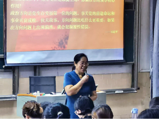 郑玉敏院长指出,“九个必须”是对中国共产党百年波澜壮阔的奋斗历程的高度凝练和深刻总结,揭示了过去我们为什么能够成功、未来我们怎样才能继续成功的深刻道理,科学回答了党和国家事业发展的领导核心、价值追求、理论指导、战略支撑、外部环境、力量来源等一系列重大问题。她鼓励同学们努力学习,掌握过硬本领,成为社会有用之才。