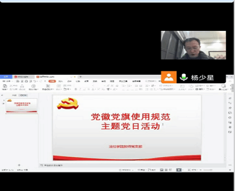 最后,学院党员书记杜应发书记指出,维护党徽党旗的尊严,就是维护党的尊严,是每名党员必须履行的政治责任,支部全体党员教师需要从讲政治的高度学习《条例》,教师党支部和各党小组要结合实际,规范使用党徽党旗及其图案,带头维护好党员和党徽党旗的良好形象,贯彻落实《条例》的政治性、严肃性。