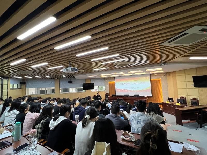 杜应发以“当立鸿鹄志,不负少年时”为主题,以毛泽东、周恩来、邓小平等老一辈革命家青年时期的抱负追求为引子,强调当代青年树立正确志向的重要性。随后他从政治、经济、意识形态、生态环境等方面讲述了新时代十年伟大变革取得的历史性成就,并且指出新时代十年伟大变革对坚定中国历史自信、增强历史主动,为全面建设社会主义现代化国家、全面推进中华民族伟大复兴具有十分重要意义。