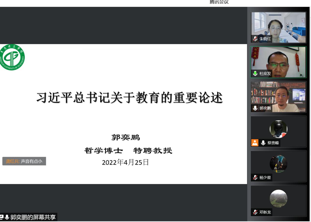 党委邀请马克思主义学院党委副书记、特聘教授郭奕鹏为学院全体教师作“习近平总书记关于教育的重要论述”的专题讲座。会议由学院党委书记杜应发主持,天下足球网