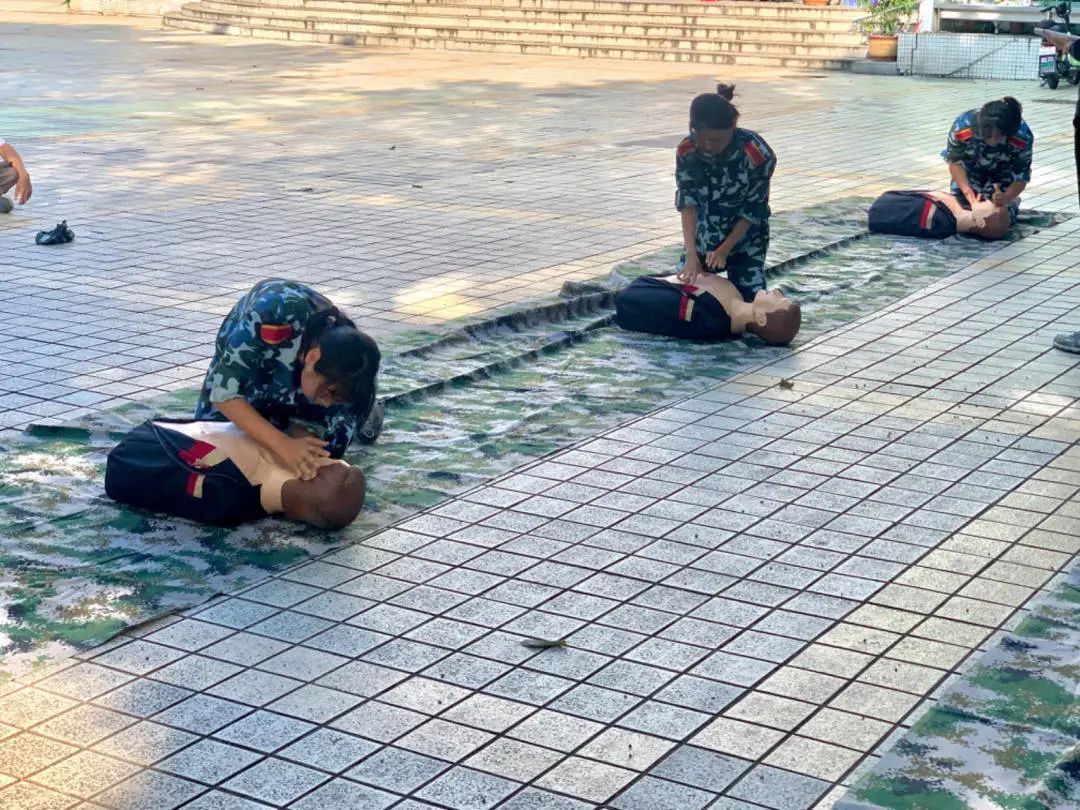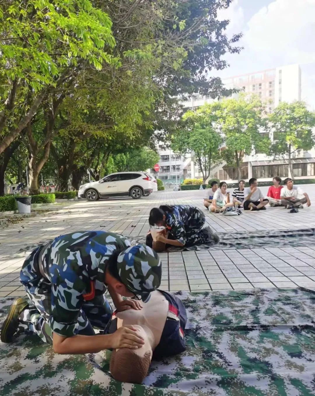 2023级新生谭皓丹、简妙淑、栗燕鸿代表13营29连参加学校组织的新生军训心肺复苏比赛并取得第一名的好成绩。