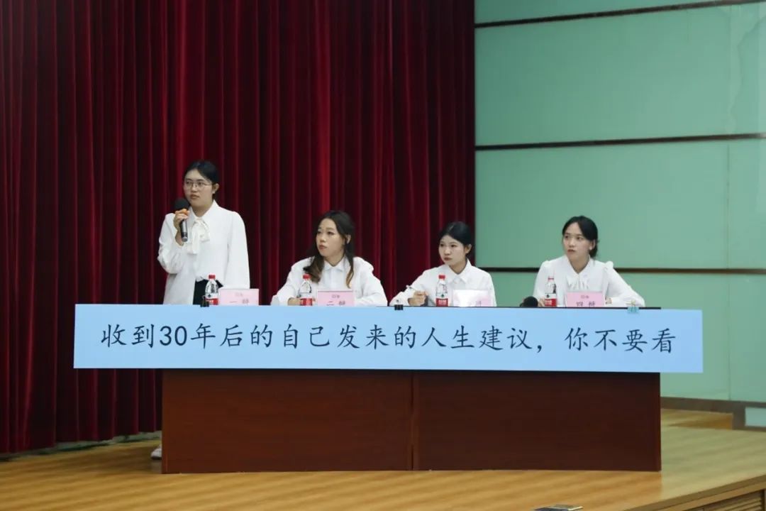 在季军争夺赛中,2023级社会工作2班和2023级法学卓越班围绕辩题“收到30年后的自己发来的人生建议,你要/不要看”展开。