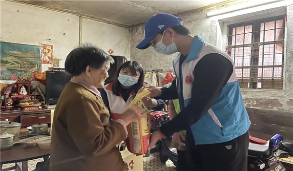 莫道桑榆晚,为霞尚满天。在金秋十月里,我们在各个楼栋之间忙碌穿梭着,为老人送来一份份关怀。“这个糖水记得要趁热喝啊,暖窝窝的现在喝着舒服,刚刚好,肿有(还有)这个点心,也是新鲜的,放不了多久,记得要早点吃完,不要不舍得吃啊,天气现在冷了,多加几件衣服,知道吧婆婆。”老人年纪大了,有一点耳背,贴着老人家的耳边,一字一句的讲下要叮嘱的话语,这些本地话中无不充满着对婆婆公公的关怀,看见老人们脸上洋溢着的笑容和幸福,我们心里同样无比开心同时也温暖了我们自己。
