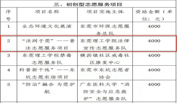 大学生普法志愿项目“法润于莞——普法志愿服务活动”获得立项扶持。