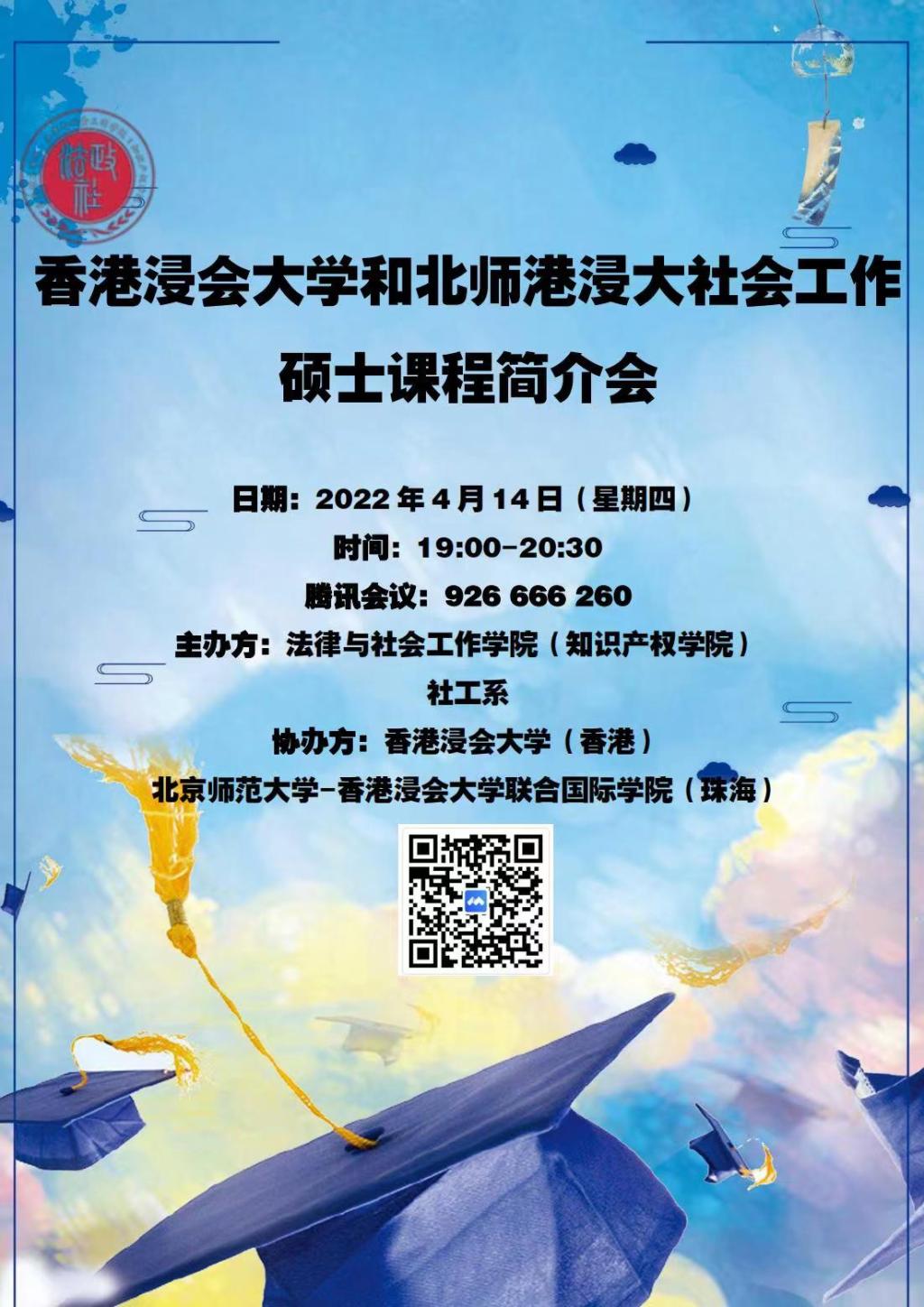 (知识产权学院)社会工作系在线上举办社工梦·启航|香港浸会大学和北师港浸大社会工作硕士课程线上宣讲会。本次讲座特邀北京师范大学-香港浸会大学联合国际学院(简称北师港浸大)社会工作与社会行政专业系主任陈錦棠、黄匡忠教授、邓美结博士、谭雅倩博士、王姝萍老师和谭凌老师为香港浸会大学和北师港浸大社会工作硕士课程做讲解与宣传。社会工作系主任成伟主持本次讲座,学院院长郑玉敏、社工系副教授卢俊、丁淑娟老师、社工实验员张子庄,同时还有来自学院各专业的学生共计近200人参与本次线上活动。