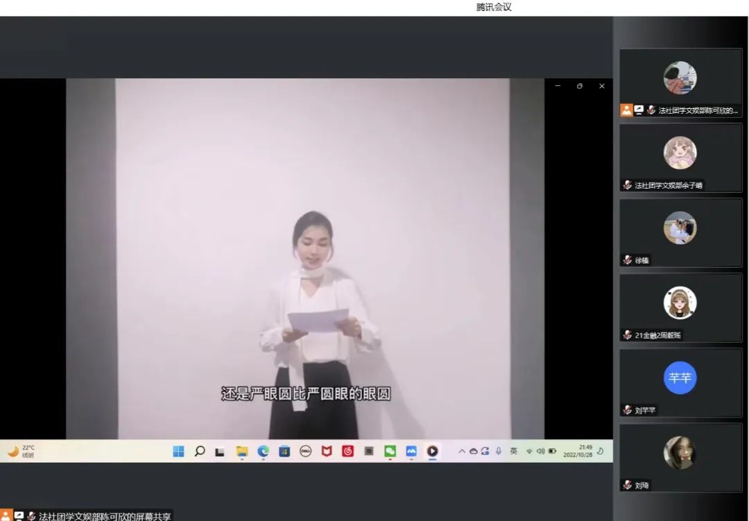 声动梦想,“持”骋未来主持人比赛海选评审于20221028日晚在腾讯会议以线上形式成功举行。本次海选由共有203位参赛选手和6位专业评审参加。