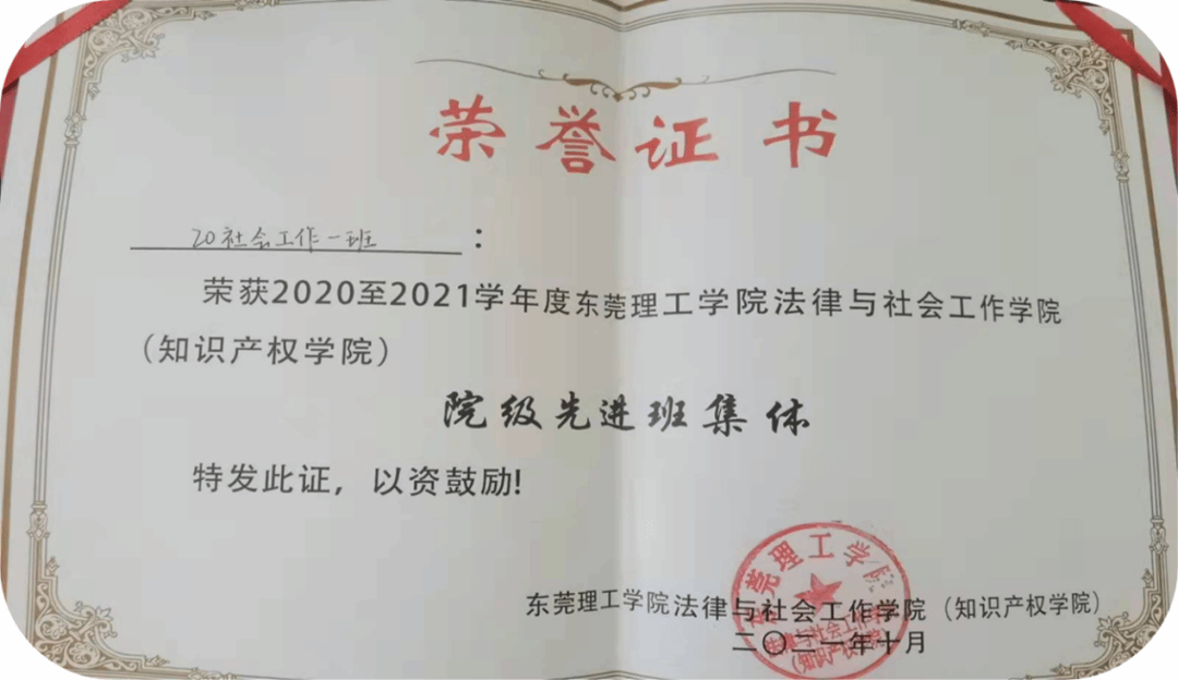 ,有一个团支部屡获佳奖:2021-2022学年度东莞理工学院“红旗团支部”荣誉称号、2021年“活力在基层”主题团日竞赛(春季)省级“千入围”奖、2021年“活力在基层”主题团日竞赛(秋季)省级“千入围”奖、2022年“活力在基层”主题团日竞赛(春季)省级“百优项目”。