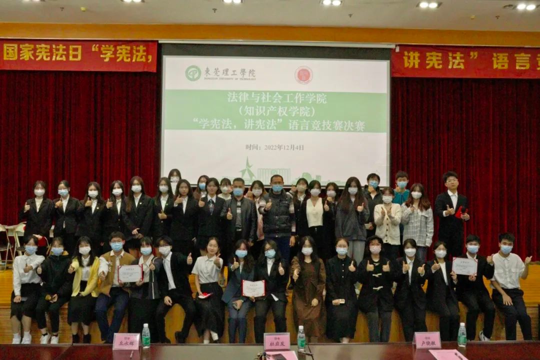 最后,评委与选手进行合影留念,至此,“学宪法,讲宪法”语言竞技大赛圆满结束。本次活动激发了同学们对宪法的学习热情,弘扬了宪法精神。希望同学们让宪法根植于心间,成为宪法的践行者。