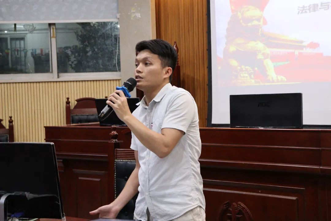 辅导员邹欢,2020级社会工作1班邓龙翔和2022级行政管理(专升本)1班谢灵灵作为分享人共同出席本次动员会。