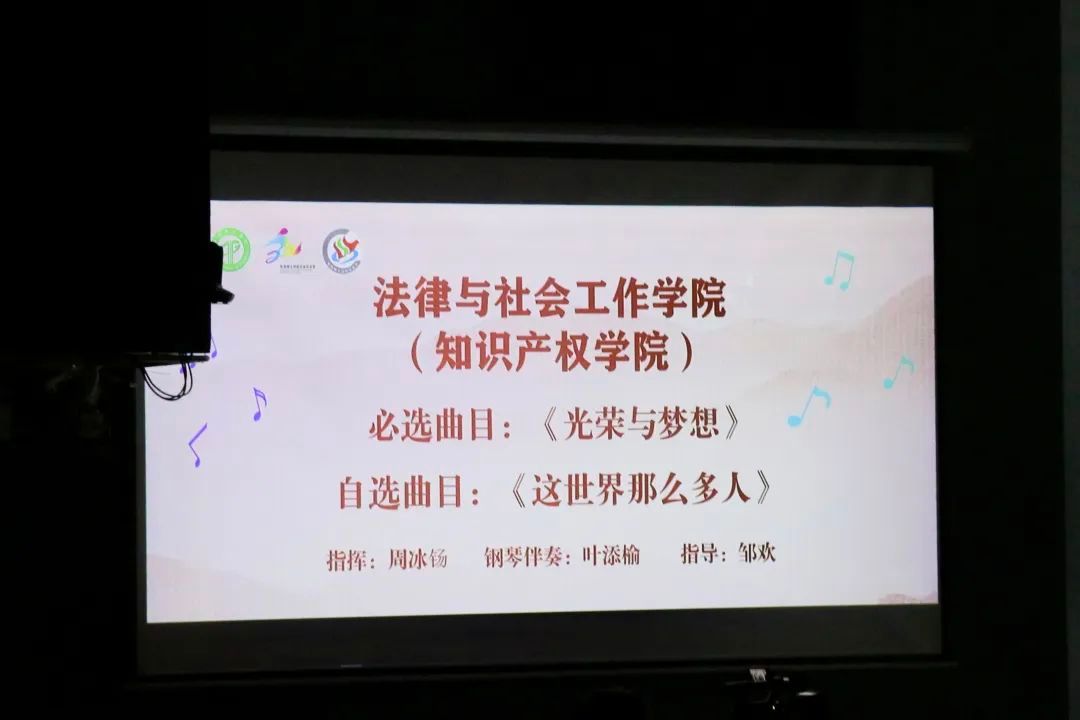 舞台上,法社学子意气风发,坚定而专注的眼眸洋溢着青年的自信与激情。男女声部配合默契,相得益彰,高低声部交相呼应,声情并茂。一首《光荣与梦想》歌唱着每个中华儿女心中的中国梦;一首《这世界那么多人》坦荡而热烈地诉说人间美好。