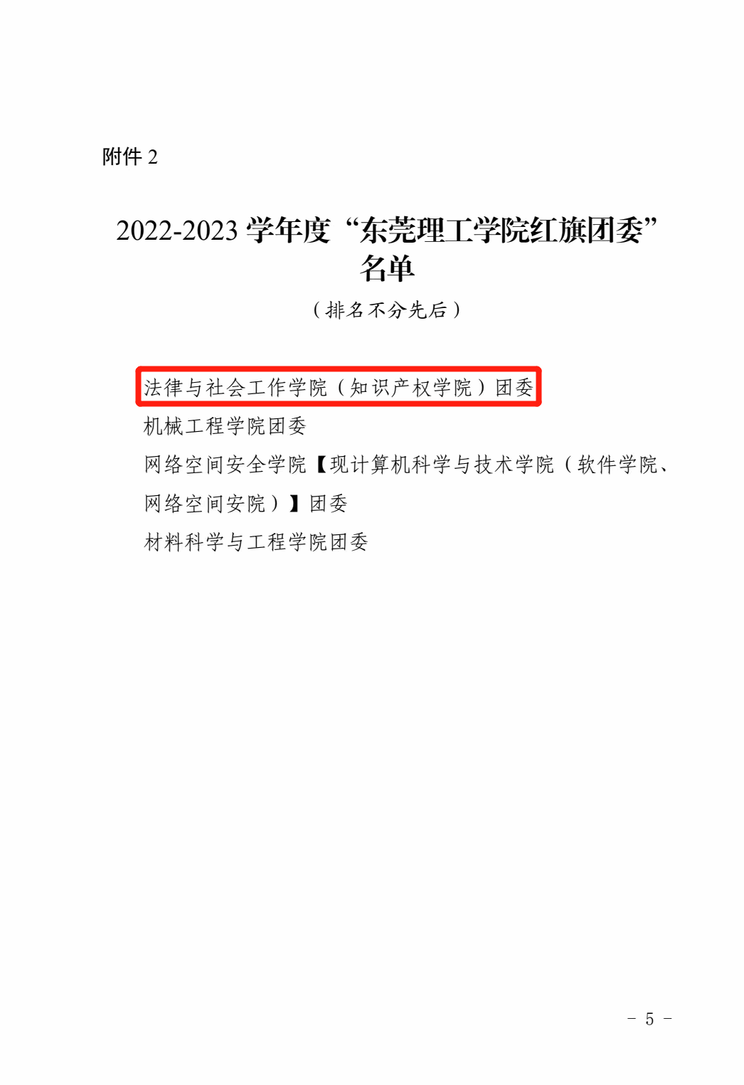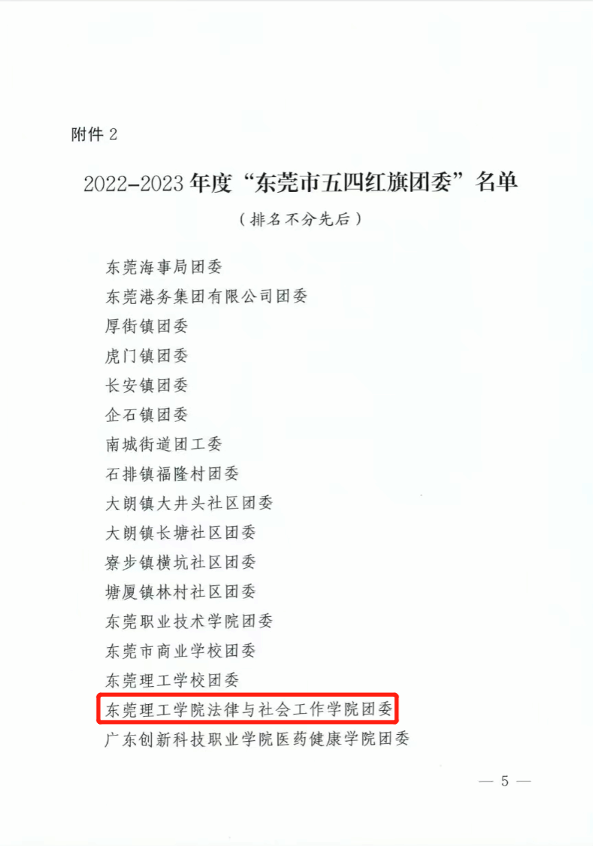 2022-2023 学年度“东莞理工学院红旗团委”