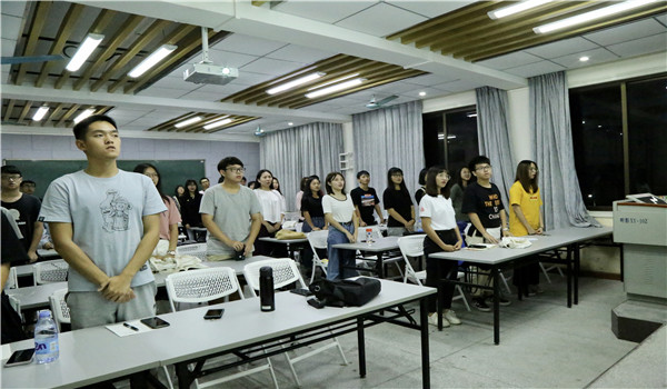 2018级和2019级各班的班长、团支书以及宣传委员参加了本次会议。主持人为团学组织部干事刘梓鹏和姚丽欣。本次会议以全体合唱团歌开启,在场的同学均为自己是中国共产党青年团中的一员而骄傲。