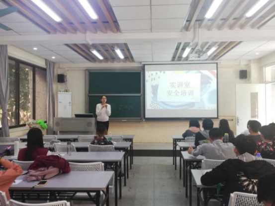 对2019级新生开展实训室安全培训。培训由实验员张子庄老师主讲,张老师从实训室管理办法讲起,从用电、消防等方面向学生讲解了实训室日常使用的注意事项,如消防设备摆放位置及正确使用方法、安全逃生路线、用电安全注意事项等。学生认真听取培训内容,对不了解的事项积极提问,现场气氛活跃。
