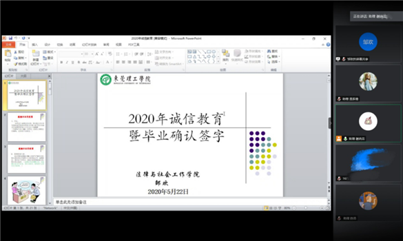 首先,邹欢老师给贷款毕业生讲述了逾期不还款的危害,其中包括对日后房贷、车贷乃至工作产生的影响,旨在教育同学们要树立诚信意识,为人诚信,准时还款。然后,邹欢老师还对贷款利率和还款结点进行了特别说明。最后,助理对还款的具体操作和步骤做了详细说明。由于疫情,为加强交流,邹欢老师还提醒同学们日后有什么问题或者困难,可以在群里提出来。