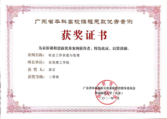 教师积极参与投稿并取得优异成绩。其中朱晓红副院长提交的《讲好中国故事 塑造良好政府形象——<公共关系学>课程思政案例》获得一等奖,居正老师提交的《社会工作价值与伦理》获得二等奖。