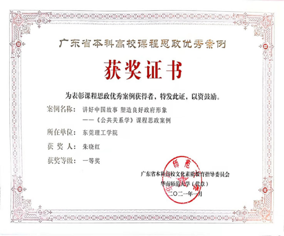 朱晓红:《讲好中国故事 塑造良好政府形象——<公共关系学>课程思政案例》(一等奖)