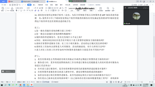 本次工作坊是由社会工作专业师生组织,目的在于提升社会工作专业学生的研究能力。本次工作坊在研讨主题上集中在实地访谈、问卷调查注意事项和citespace软件操作演示三个方面。为保证研讨的充分性,本次工作坊主要针对智慧养老选题的大创项目学生。