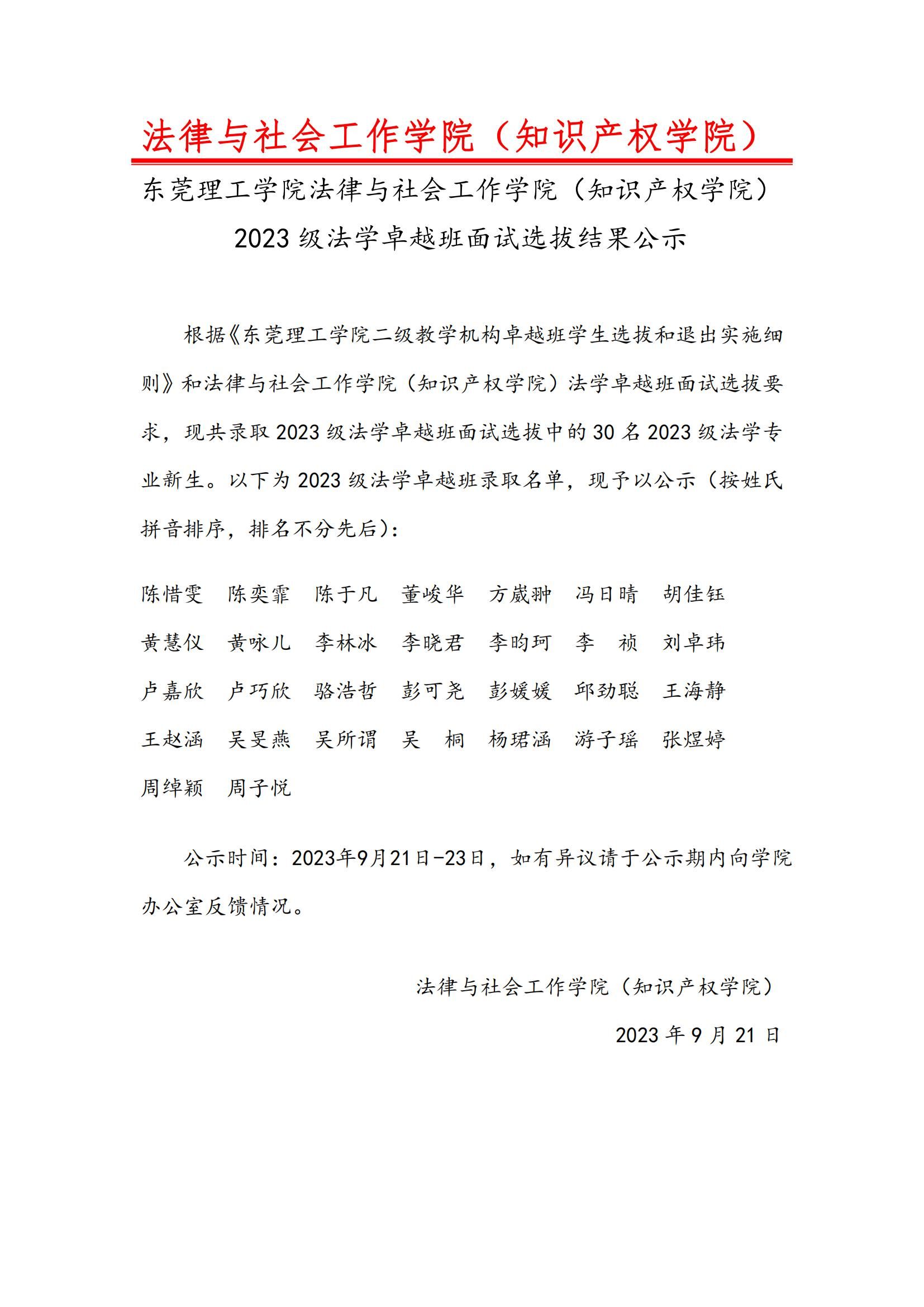 天下足球网-天下直播足球直播 2023 级法学卓越班面试选拔结果公示