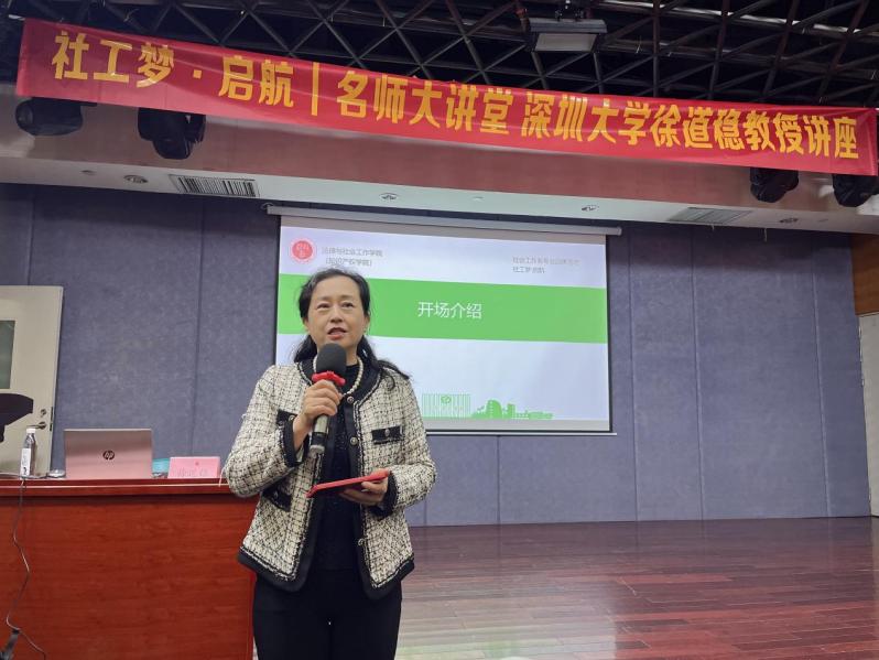 讲座伊始,徐教授介绍了社会工作人才队伍建设简要历程,接着介绍了社会工作人才队伍建设取得巨大成就,他指出,随着社会的进步和科技的发展,社会工作面面临新形势、新挑战、新要求,他主要对我国国内的主要形势进行了分析,而后对社会工作的中西差异进行了介绍,最后提出要从培养、评价、使用、激励四个方面推动人才队伍高质量发展。