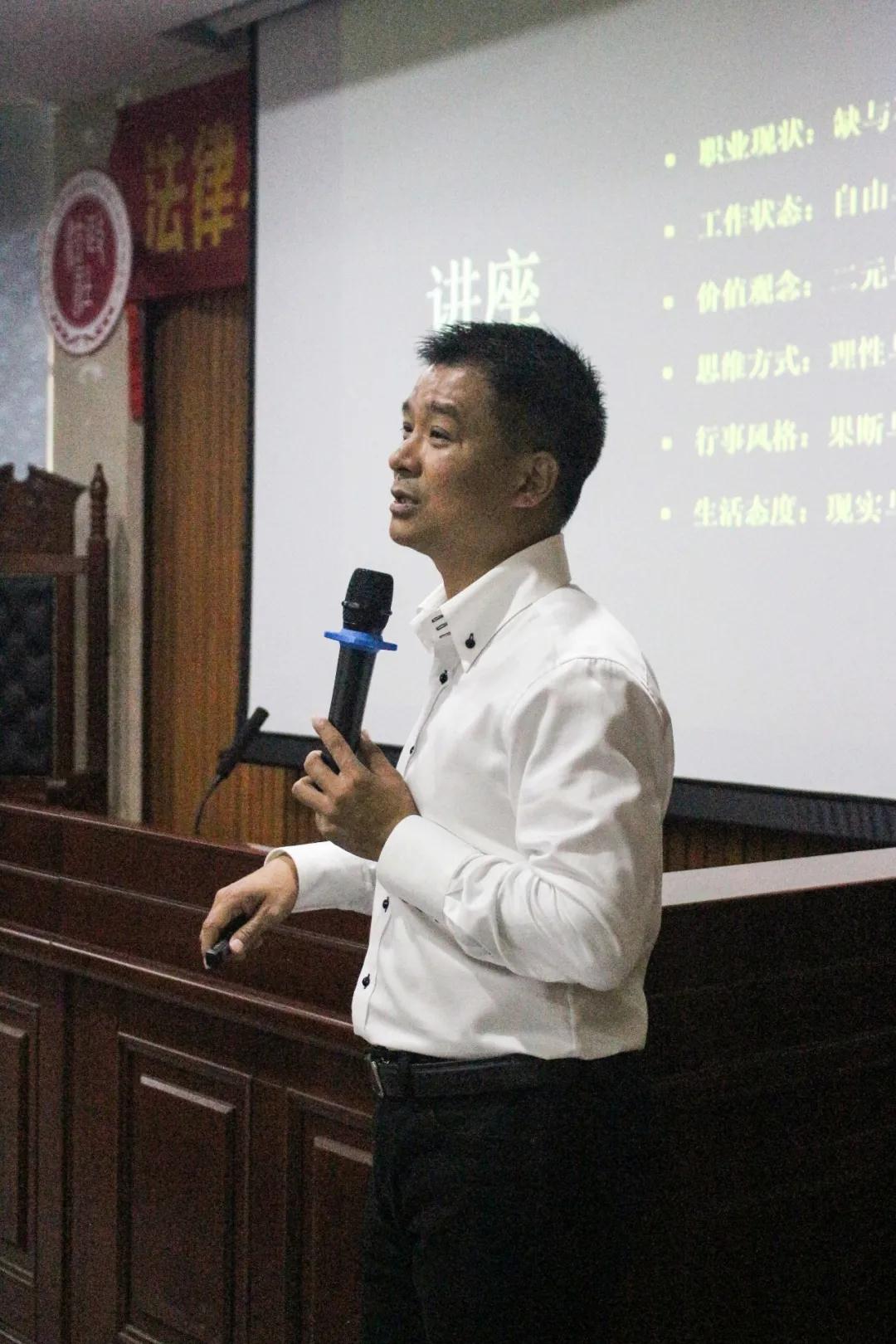 在莞城校区模拟法庭举行“法路历程”第八期系列讲座,邀请了汪宏杰律师对民法典时代的法律人工作和生活进行讲解,学院老师李文伟、熊毅军等出席。