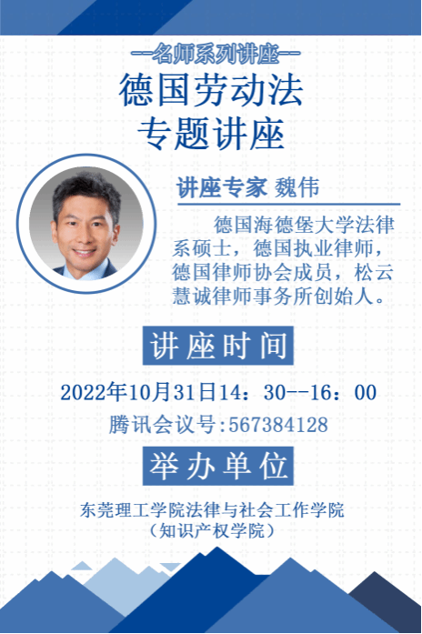 顺利举办了以“德国劳动法”为主题的学术讲座。本次讲座主讲嘉宾为德国执业律师、松云慧诚律师事务所创始人魏伟律师。参加本次讲座的人员有天下足球网