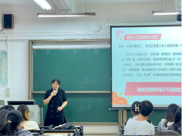 为了让同学们更加了解老年社会工作实务,了解老年社会工作的发展,老年社会工作课程老师林寒特别邀请了东莞市鹏星机构社工徐梦茵于2023年5月29日上午为2021级社会工作的学生分享其自身的机构经历和一些真实案例。