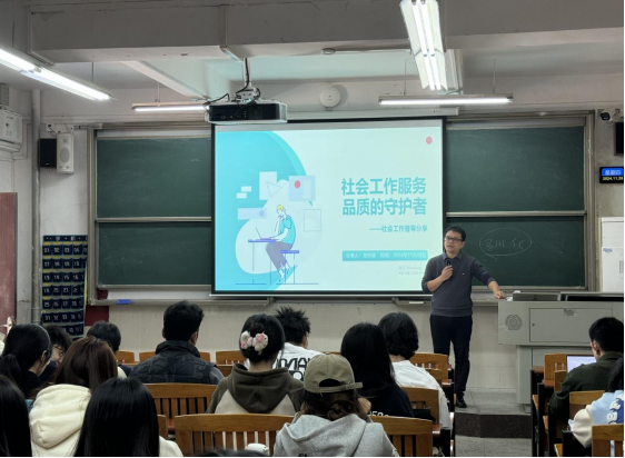 2024年11月28日,党曦老师邀请了东莞市普惠社会工作服务中心的一级社工师、中级督导陆有雄到2022级社会工作本科班的《社会工作督导》课堂,进行“社会工作服务品质的守护者之社会工作督导实务”的主题分享。陆有雄督导向同学们分享了他对社会工作服务品质的理解以及多年社工督导经验,并为同学们提供职业发展建议。