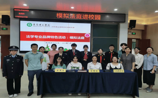 的品牌特色活动,法学专业的“模拟法庭”活动已经形成了一套走出去引进来的组织活动机制。与地方司法行政机关常态化协作,以模拟法庭方式开展普法宣传,已经成为了法学专业服务地方法治的重要形式。为东莞多个中小学、社区、工厂开展法治宣传,服务地方提升地方普法的感染力和实效性,是一个具有较强的引导示范力和可复制性的法治宣教优秀品牌活动。