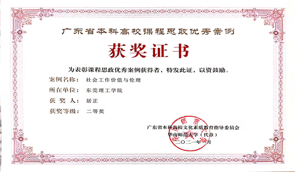 教师积极参与投稿并取得优异成绩。其中朱晓红副院长提交的《讲好中国故事 塑造良好政府形象——<公共关系学>课程思政案例》获得一等奖,社会工作系居正老师提交的《社会工作价值与伦理》获得二等奖。