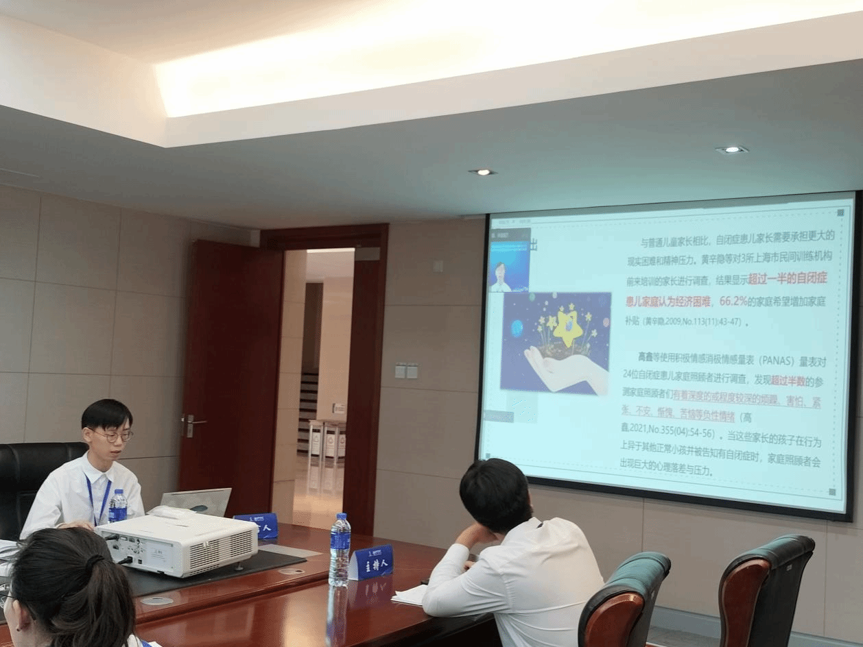 袁铸峰同学提交的论文《社会工作何以介入自闭症儿童抢救性康复——以D市“与星同行计划”为例》以参与2019-2022 年D市“与星同行计划”项目的300位家长作为调查对象,通过评估他们的需求、在参与项目后的改变与反馈,发现这部分群体的压力与探究社会工作何以介入自闭症儿童抢救性康复。并且,通过对项目的反思,提出了社会工作介入自闭症儿童抢救性康复的四个优势与路径:从追求“技术偏好”到“情感慰藉”;从家庭关系失调到功能重建;从“看不见国家和社区”到“找回国家和社区”;从“庇护主义”到“社会融入”。论文层层深入,提出了比起医学干预手段,社会工作关注到了社会环境对自闭症群体家庭发展与自我结构功能完善的重要性,并在推进全民无障碍建设上凸显了重要作用的观点。内蒙古工业大学的陈建英副教授对论文做了精彩的点评。