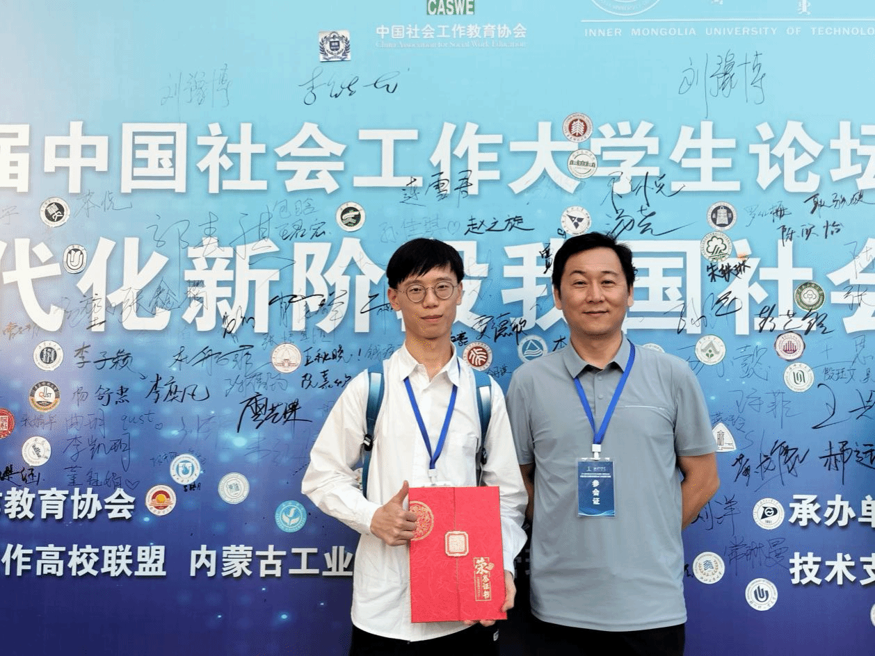 社会工作系2021级袁铸峰和王帼萍同学获邀参会,其中袁铸峰同学被选为分论坛主持人,其分享的论文《社会工作何以介入自闭症儿童抢救性康复——以 D 市“与星同行计划”为例》荣获本科生组二等奖。
