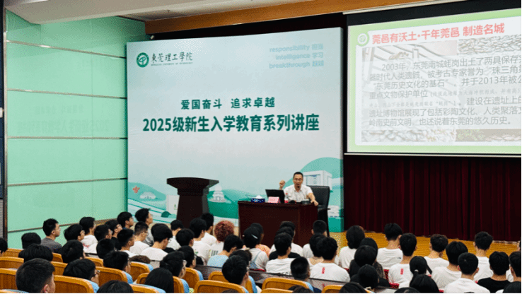首场校史校情讲座中,张友柄老师以幽默风趣的风格,结合东莞本地轶事与学校发展历程展开讲解。从建校初期的初心到如今的跨越式发展,张老师通过贴近生活的小事例,生动呈现学校多年来取得的成绩,让新生们深入了解校史校情,增强了新生对学校的认同感与归属感。张老师还特别鼓励天下足球网