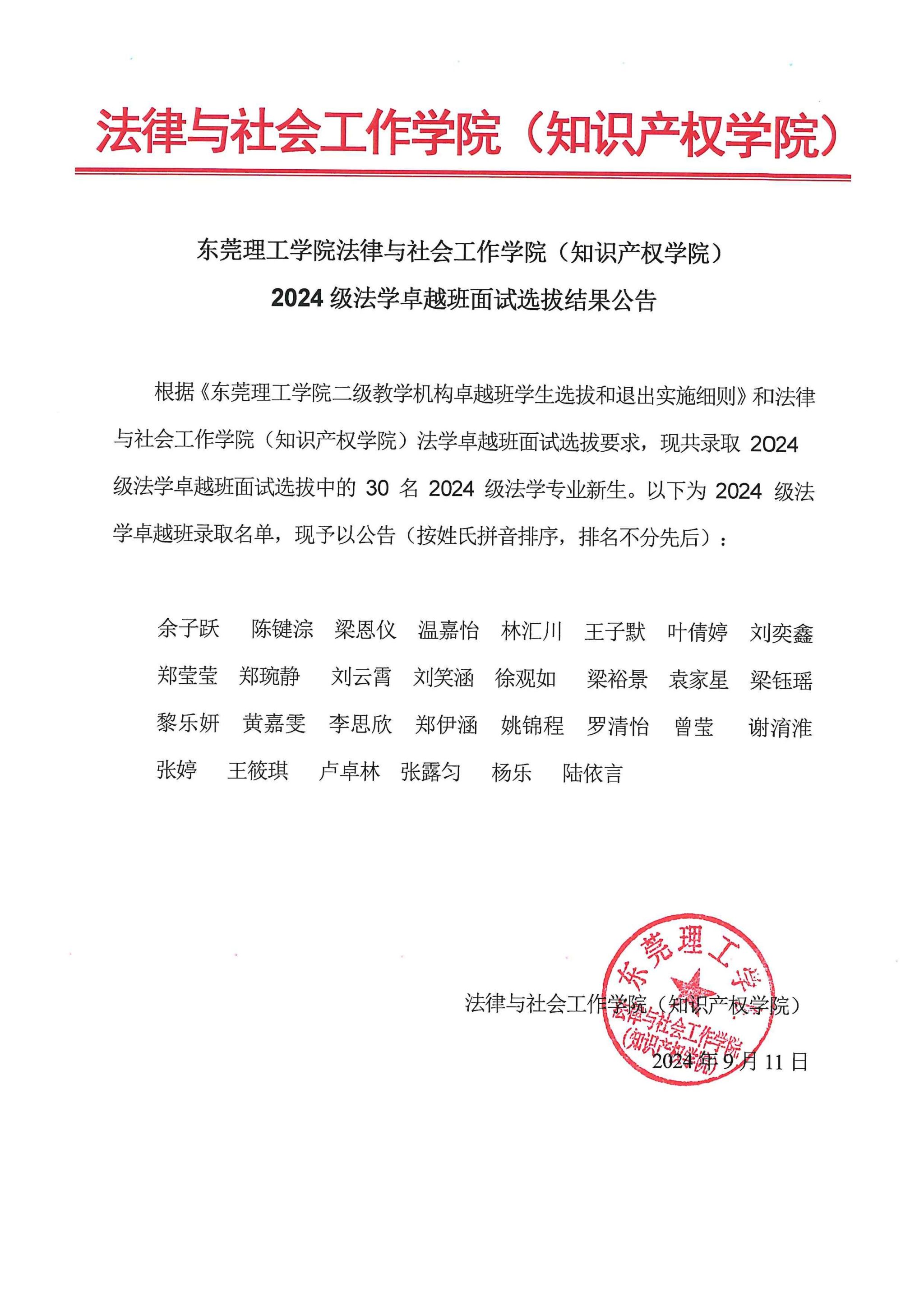 天下足球网 2024级法学卓越班面试选拔结果公告