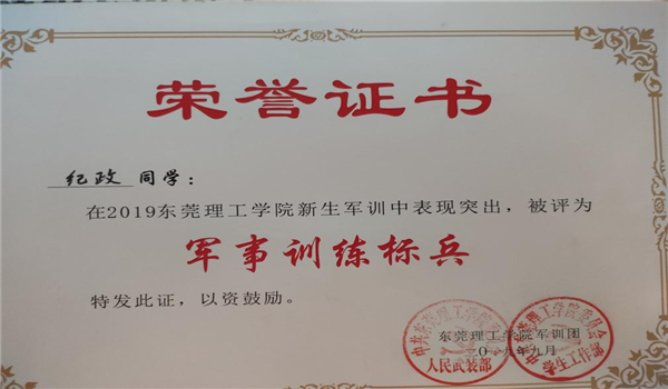 纪政,2019级社会工作专业1班学生。学习绩点达4.16;2019年9月军训标兵;2020年6月获得校级大学生创新创业立项;2020年11月获得广东省国家励志奖学金;2020年12月获得东莞理工学院三等奖学金;2021年3月入围校级2021年“挑战杯”大学生课外学术科技作品竞赛;2021年6月获得国家级大学生创新创业立项;2021年8月获得广东省一星志愿者称号;2021年11月获得东莞理工学院国家奖学金。