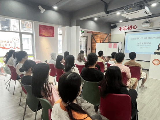 21知识产权1班在莞雅社区活动室开展了以“开学第一课:强意识,敢担当”为主题的班会活动,此次活动由全体21知识产权班全体同学参加。