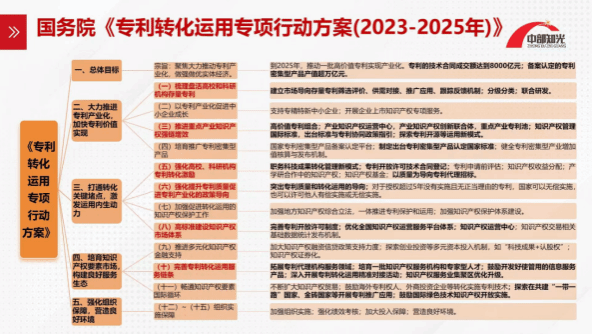 龚红兵老师重点讲解了国务院办公厅印发的《专利转化运用专项行动方案(2023—2025年)》的通知(国办发〔2023〕37号),特别指出了企业专利转化运用过程中的法律风险,并提出系统的法律防范措施。