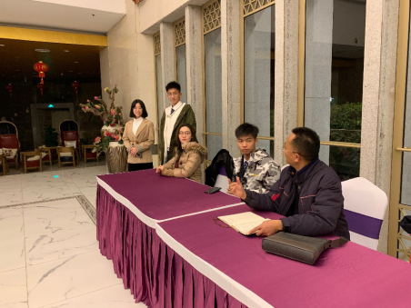 比赛团队一行六人来到比赛地点所在的华南理工大学中心酒店。晚上23时,龚红兵老师与胡庆乐老师一起召集大家在中心酒店大堂进行深夜指导以及最后的预演排练。老师让选手们再次模拟实战演练,并让选手之间互相观摩,提出各自的看法与意见,龚老师还为同学们提出更加完善的建议。全体人员在场仔细聆听着两位老师的指导。直到深夜,老师们和同学们才回到房间休息,迎接明天的正式比赛。