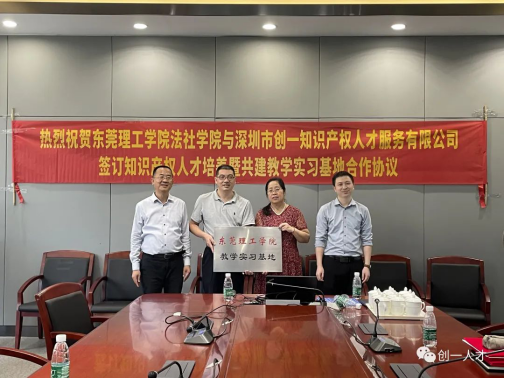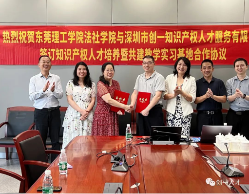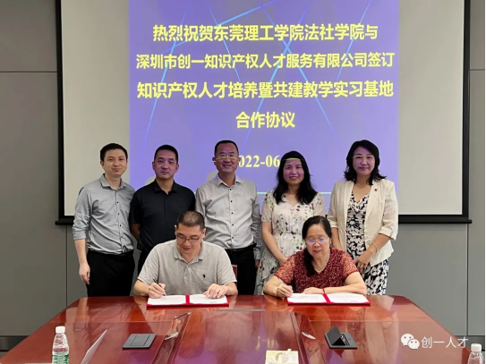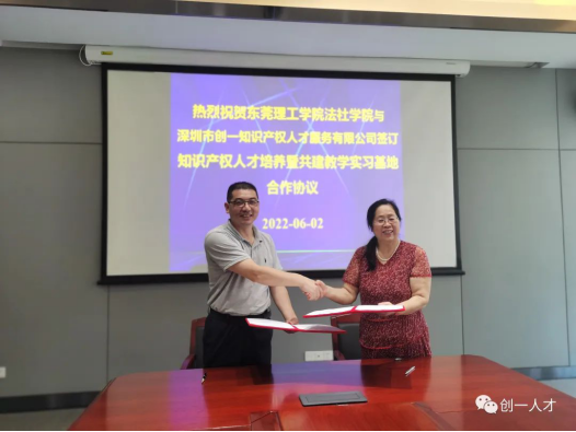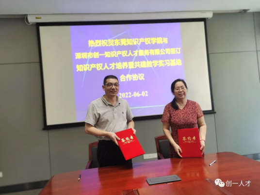 ”)与深圳市创一人才服务有限公司(以下简称“创一人才”)正式牵手,双方于东莞市松山湖国际创新创业园区,共同签署知识产权人才培养暨共建教学实习基地合作协议。