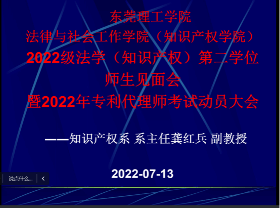 在腾讯会议上举行了2022级法学(知识产权)第二学位师生见面会暨2022专利代理师考试动员大会。